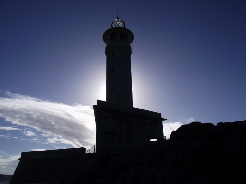 Es el faro más reciente de nuestras costas. El camino que nos lleva hasta él está poblado de grandes formaciones rocosas con curiosas formas que nos recuerdan figuras de perro, oso, tortuga, un elefante de larga trompa, una bruja con cara de anciana gritando y muchas otras que nuestra imaginación nos haga descubrir. En los últimos tiempos, estas rocas son utilizadas por grupos de aficionados a la escalada libre, siendo muy normal verlos retar a estas preciosas piedras. El faro es un precioso barco de granito que se fusiona perfectamente con la costa rocosa del entorno. Como mascarón de proa, un atlante reta al furioso mar y soporta la ventisca mientras los visitantes se refugian en la pétrea nave. Desde la borda de éste singular barco lo único que se divisa además del inmenso océano es el vecino y conocido Roncudo.