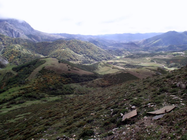 al fondo pola de lena desde el alto de la cobertoria este lado del concejo de lena es la cara con mas desnivel del puerto de la cobertoria ya que la comparten los concejos de lena y quiros.