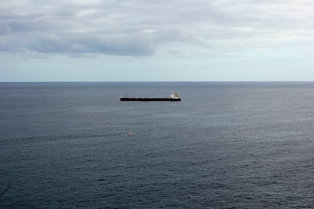 barco mercante fondeado al abrigo de la ensenada de la ria de vivero